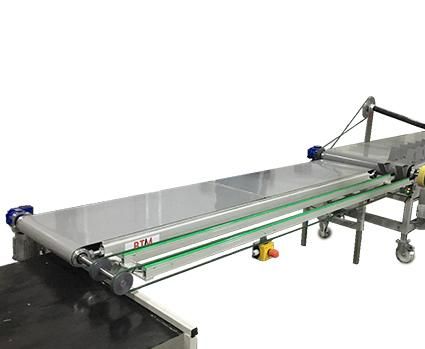 As an add on we can offer a buffer belt (2.500 mm) with integrated control; adapted to the FH 1400 Including emergency stop and guiding snares. A plug & play solution, perfect for sleeving your bundles!