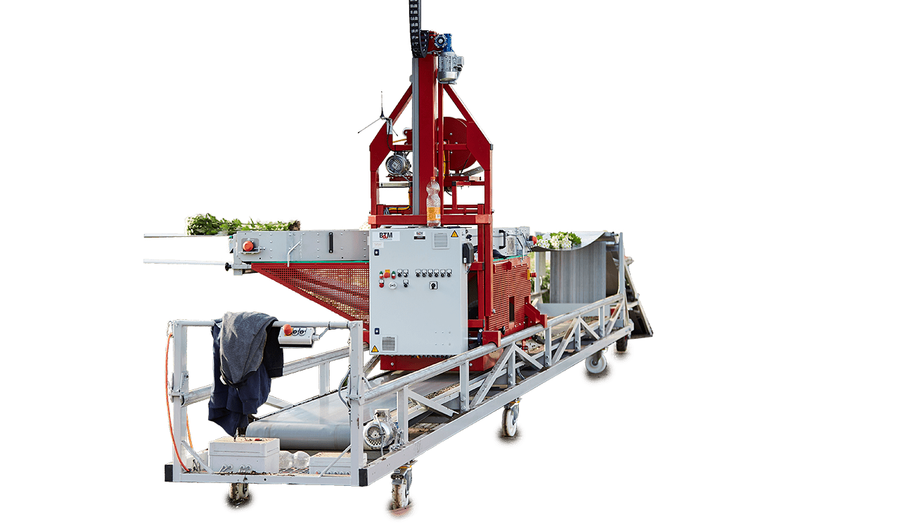 This machine has been specially developed for the effective and reliable transport and processing of cut flowers in the greenhouse. The machine combines a high production capacity with flexibility. The T124/T127 can be assembled in various designs in consultation with the customer.