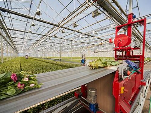 Esta máquina se ha desarrollado especialmente para el transporte y procesamiento eficaz y fiable de flores cortadas en el invernadero. La máquina combina una gran capacidad de producción con flexibilidad. La T124/T127 puede montarse en varios diseños previa consulta con el cliente.
